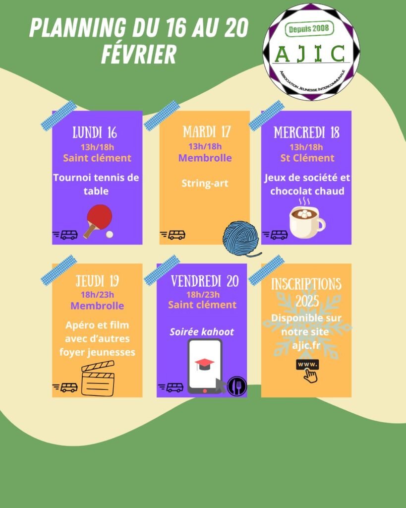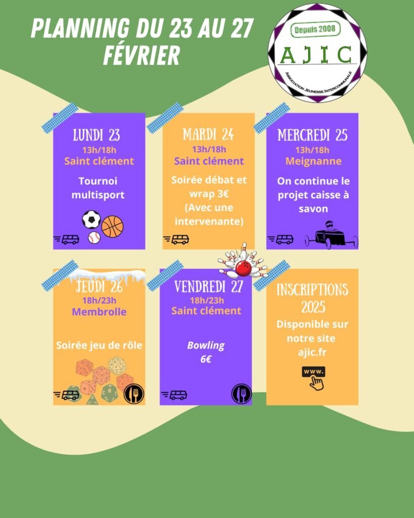 Hello tout le monde, vous trouverez le planning pour le mois de Février, avec les deux semaines de vacances, on vous y attends nombreux et nombreuses !