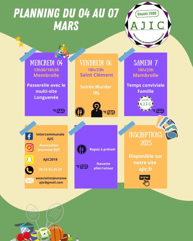 👉 Très important : les inscriptions ouvrent le Mercredi 25 Février à partir de 10h.